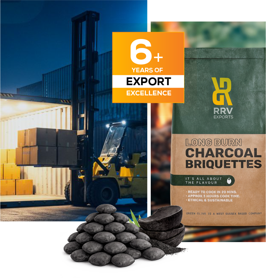 RRV Exports is a trusted Indian exporter of coconut shell charcoal and briquettes, delivering eco-friendly, high-quality products with consistent heat, low ash, and superior performance for global clients.