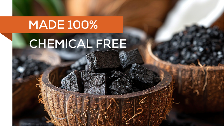 Premium coconut shell charcoal with high heat, low ash, and long burn time for BBQ